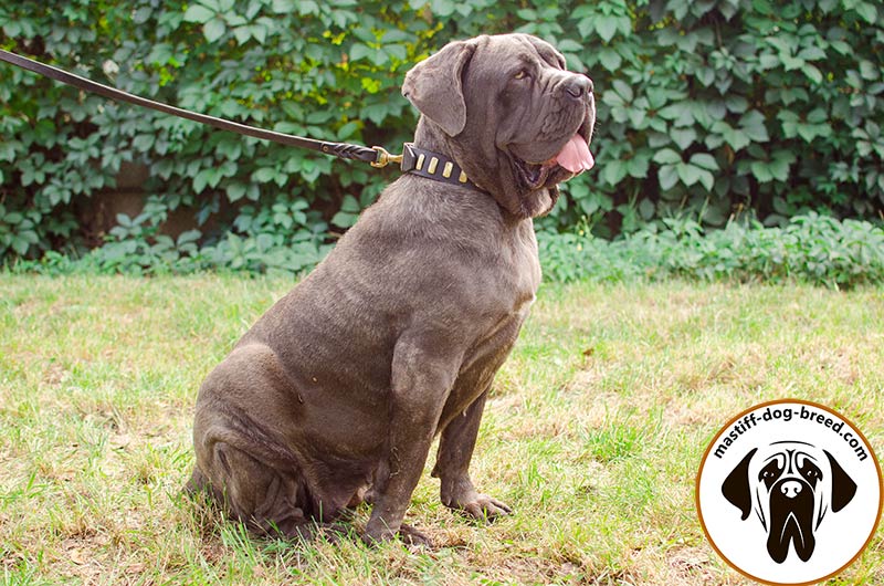 - Being produced of full grain genuine leather the Collar is reliable, durable and pleasant to the touch. This material is considered to be one of the most convenient materials for dog training stuff because it is non-artificial and dog-friendly. If using this collar you will be able to control your Mastiff in any situation - it is quite strong to withstand the loads of the strongest canine.