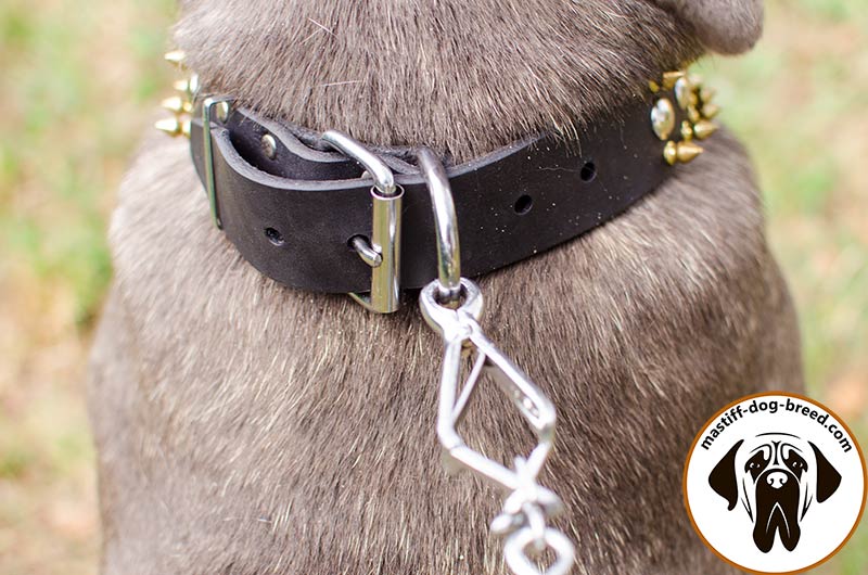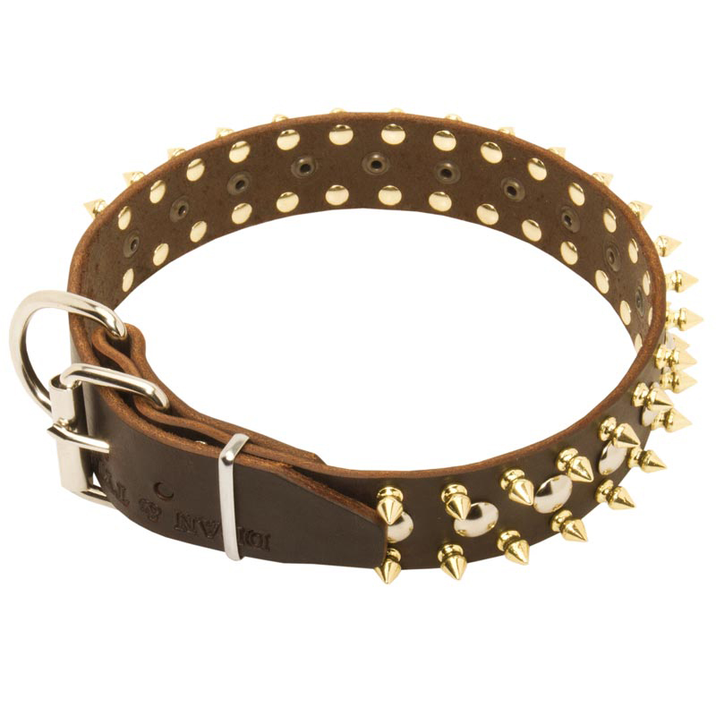 Model: S57##1126 3 Rows Leather Collar with Nickel Studs